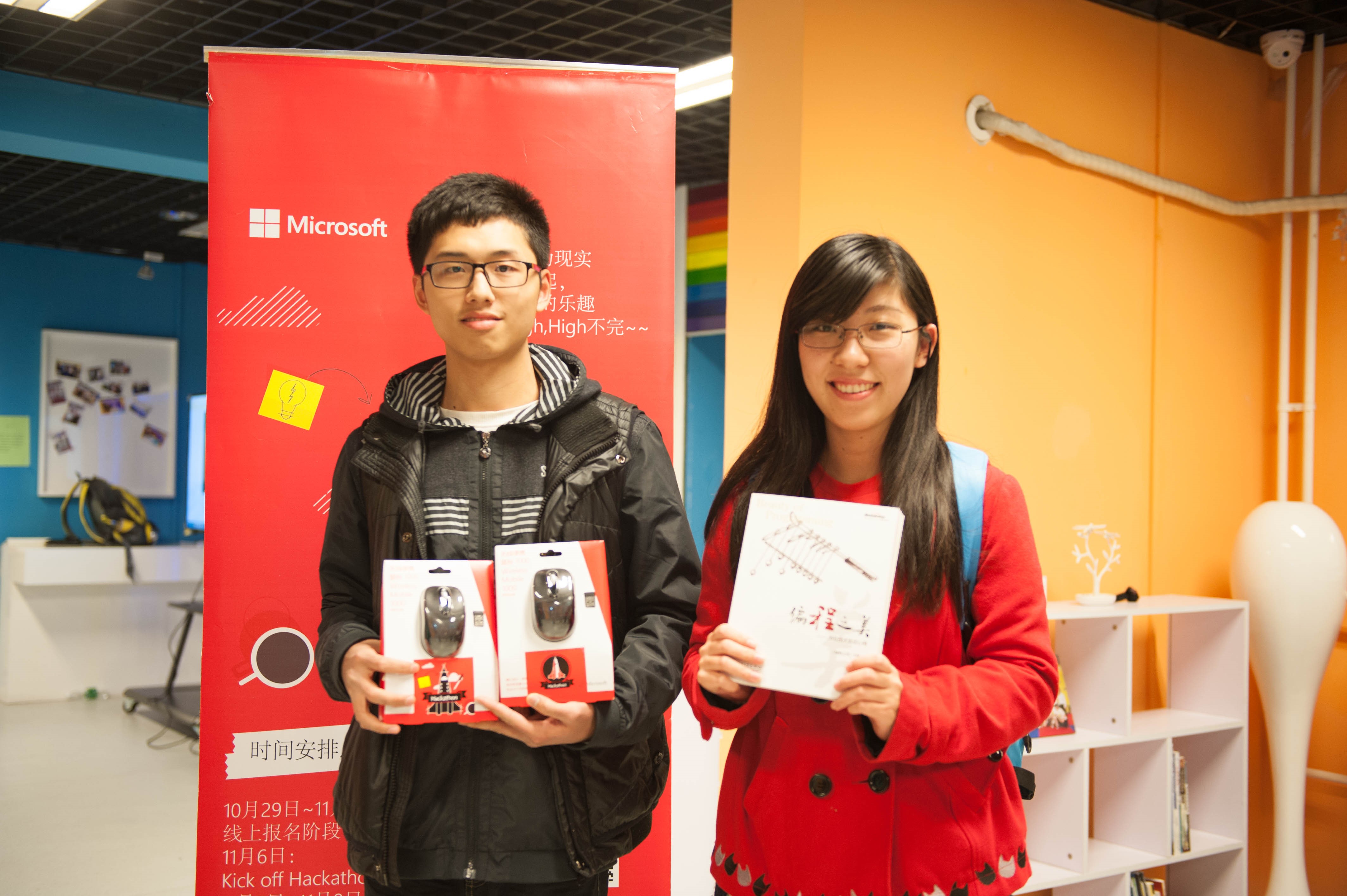 两点多钟的时候我邮在微软的两位校友——姜师兄和唐师姐前来助兴,正赶上我们的 Poster Session,大家都把项目用一张两开的纸画了出来,在一个房间里给其他同学展示,如果觉得还不错可以送一张贴纸作为奖励。大家意犹未尽的时候我们开始项目评审,期间还一起观看了微软的创新秀(虽然问题不断)但是整个气氛都非常的棒!